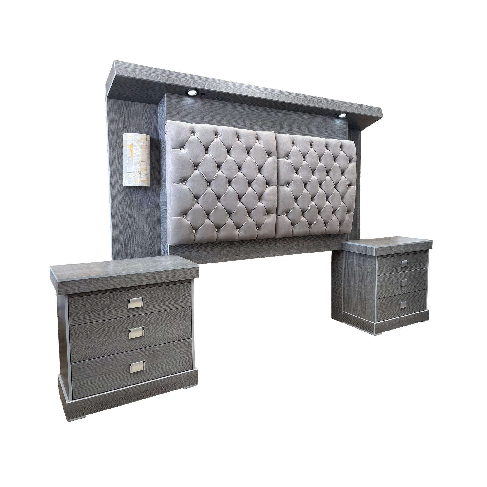 Convierte tu habitación principal en un espacio moderno y sofisticado con la Recámara Carly King Size, un conjunto de seis piezas que destacan por su funcionalidad y diseño contemporáneo. Tapizada en tela velvet o lino, con lámparas integradas en la cabecera cubiertas por mampara de ónix, esta recámara ofrece tanto estilo como practicidad.