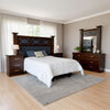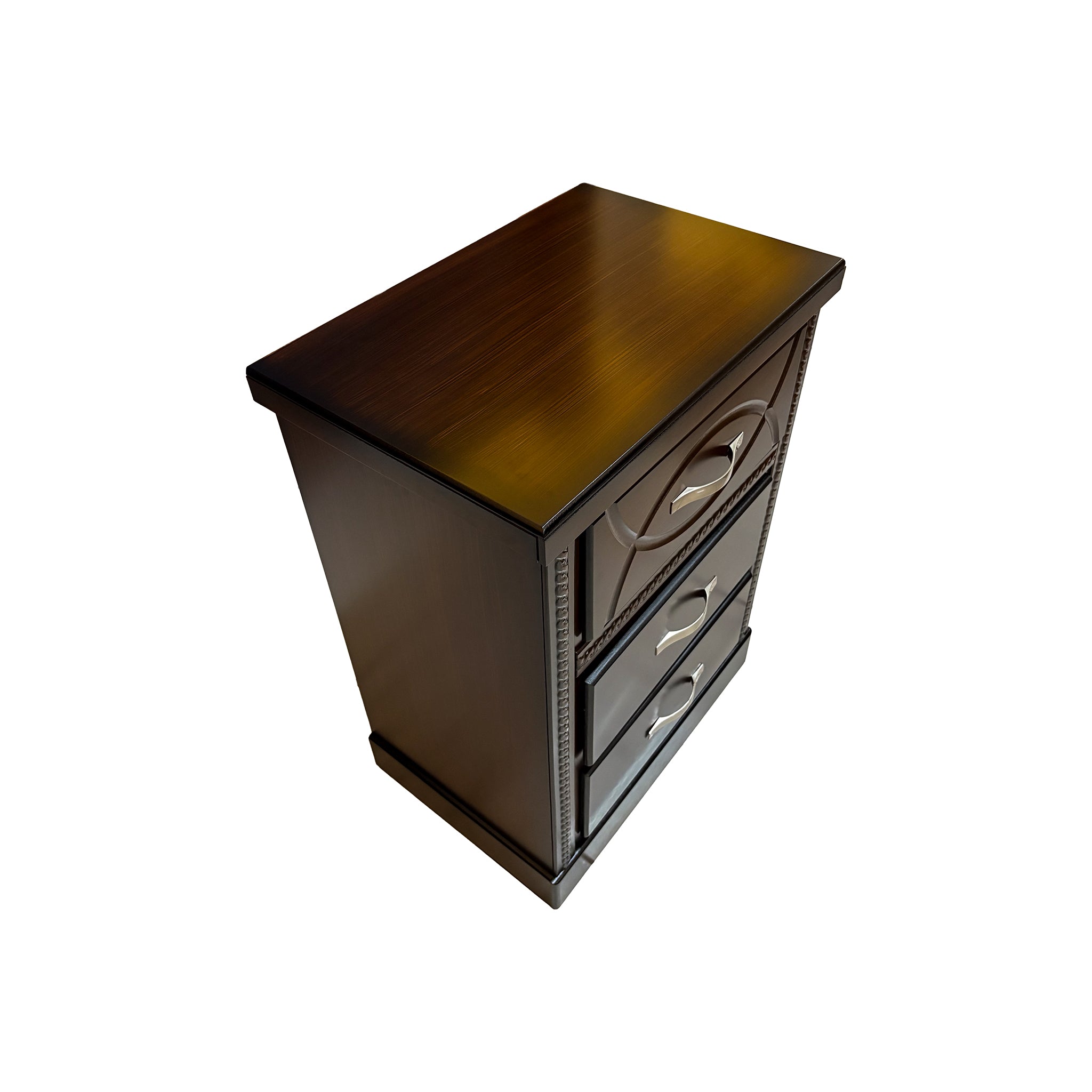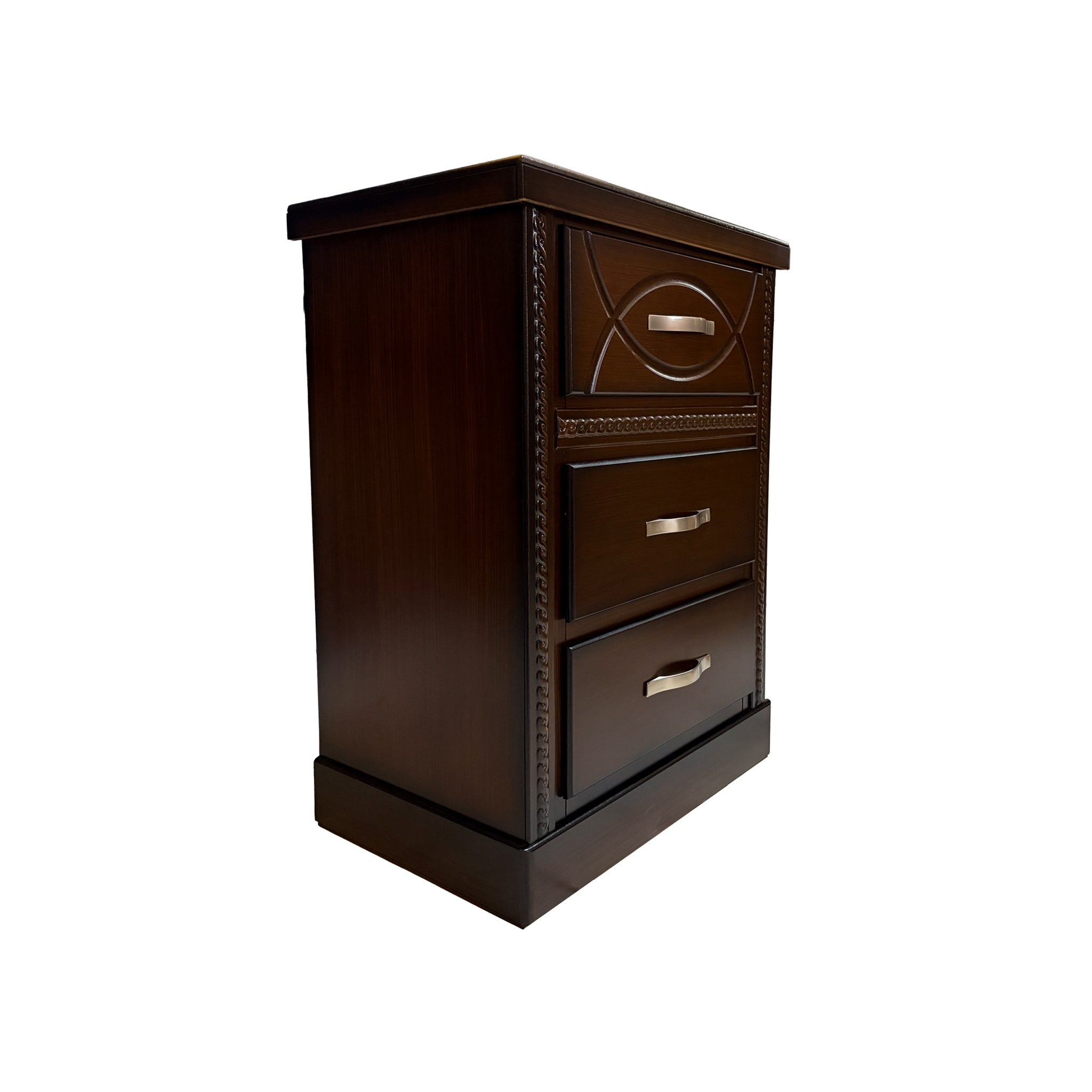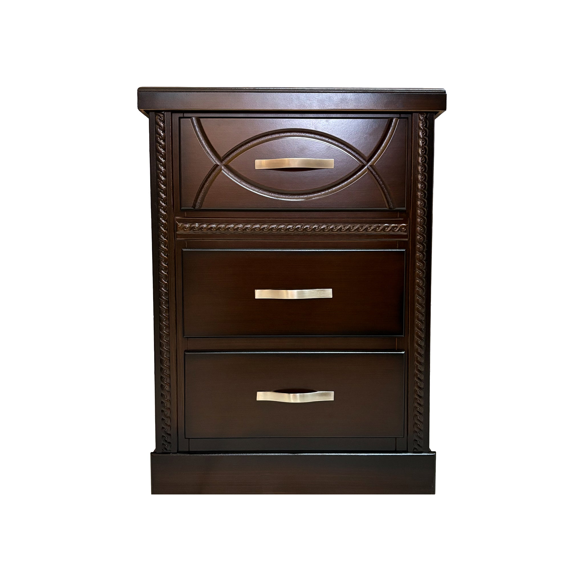 La Recámara Gabana ofrece un diseño con personalidad, ideal para quienes buscan un estilo clásico y sofisticado en su habitación. Fabricada en color nogal oscuro, esta recámara resalta por sus detalles tallados en grabado y relieve, presentes tanto en la cabecera como en el tocador.
