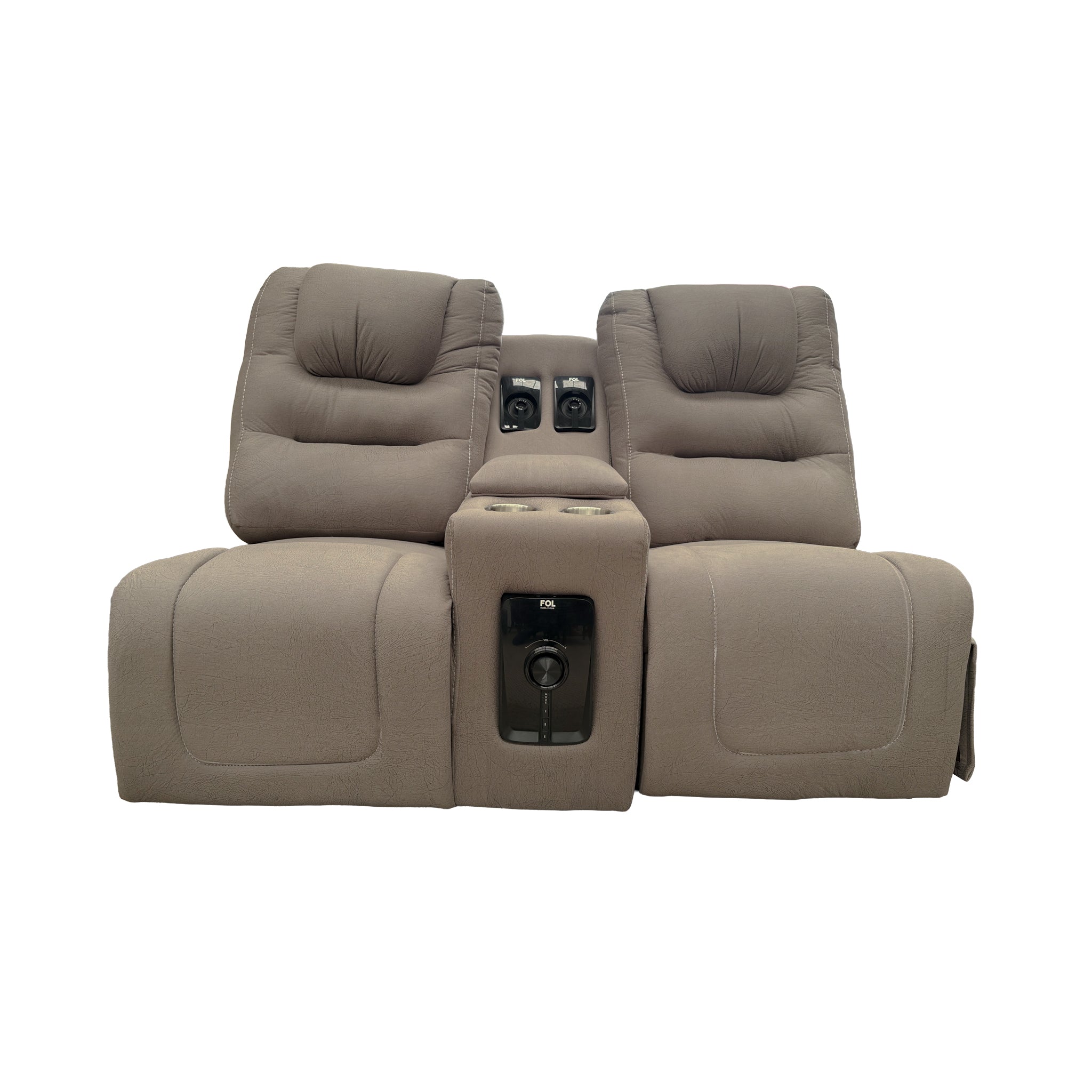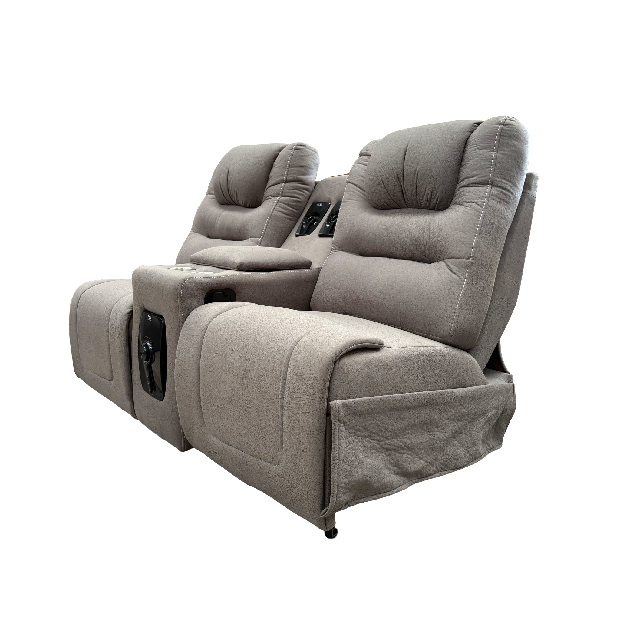 La Sala Ducaty está diseñada para brindar máximo confort y funcionalidad en espacios amplios. Consta de 2 love seats, cada uno con un asiento reclinable, una consoleta con porta vasos y compartimento de almacenamiento, además de un sistema de audio integrado en uno de los love seats que eleva la experiencia de entretenimiento. El conjunto se completa con un esquinero y un chaise lounge, logrando una sala versátil.