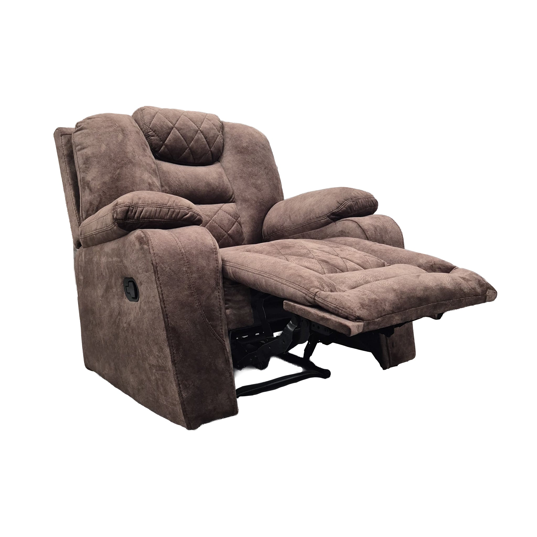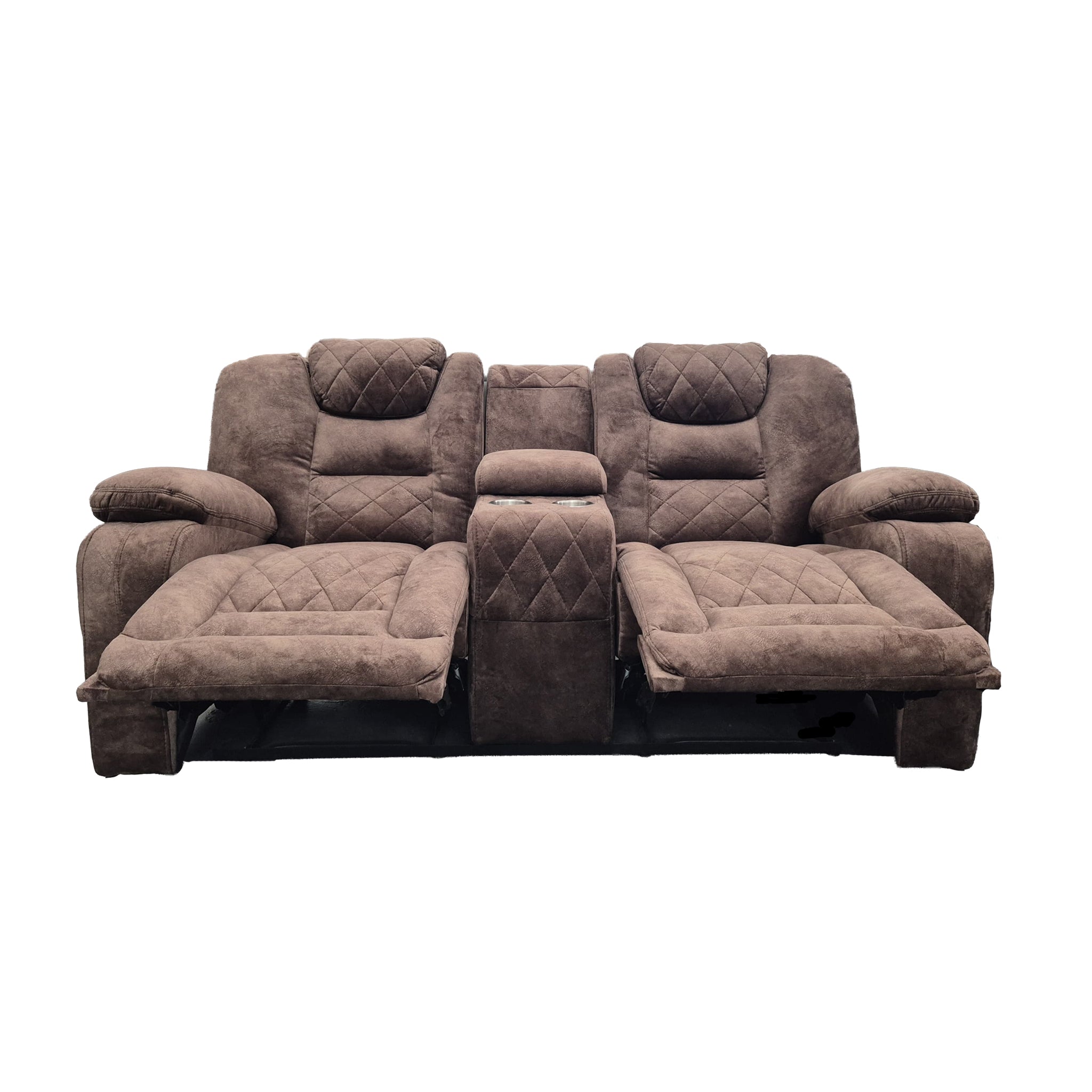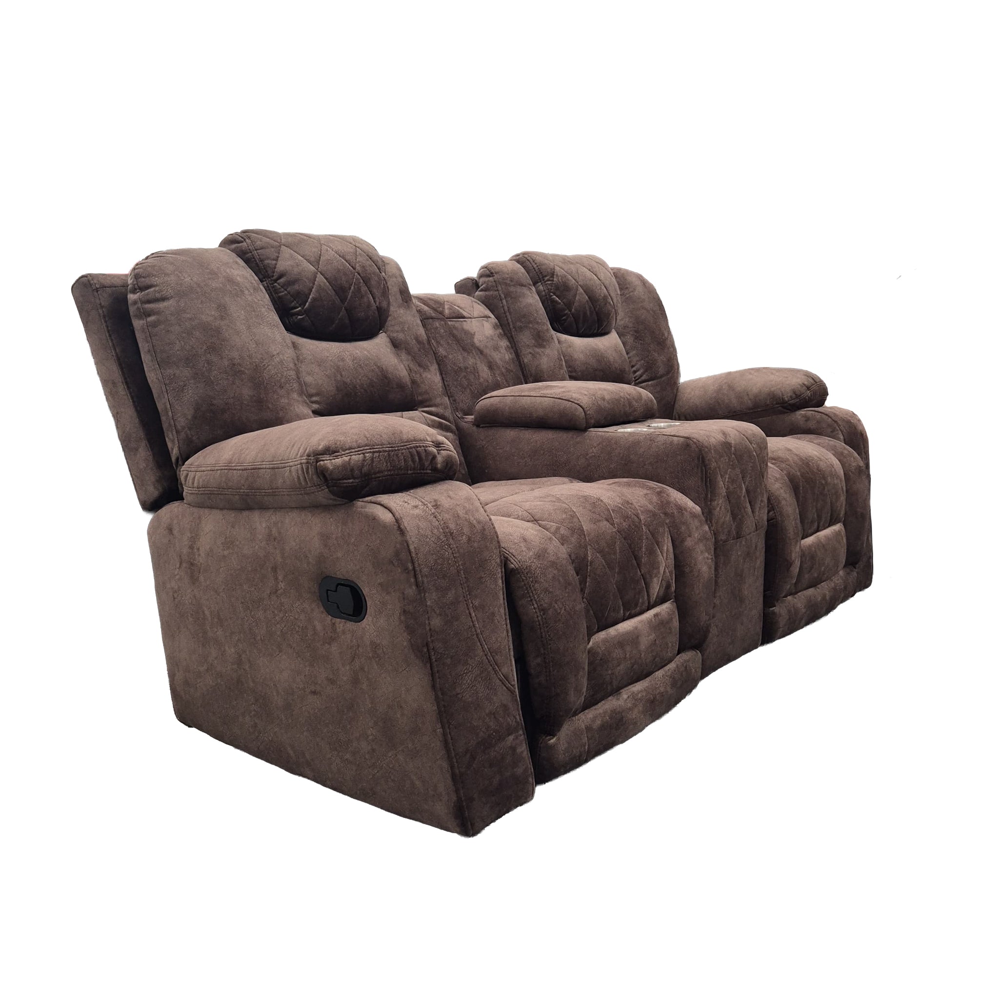La Sala Phoenix esta conformada por un sofá triple, loveseat y sillón individual, tapizada en tela Bernard 293, suave al tacto y de fácil mantenimiento. Incorpora 5 mecanismos reclinables manuales que permiten mayor confort, además de un gabinete central con portavasos. Su diseño acolchado con costuras decorativas aporta un estilo moderno y funcional.