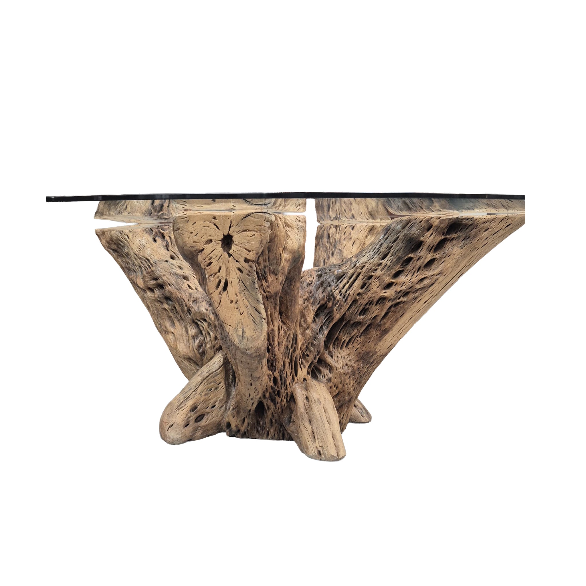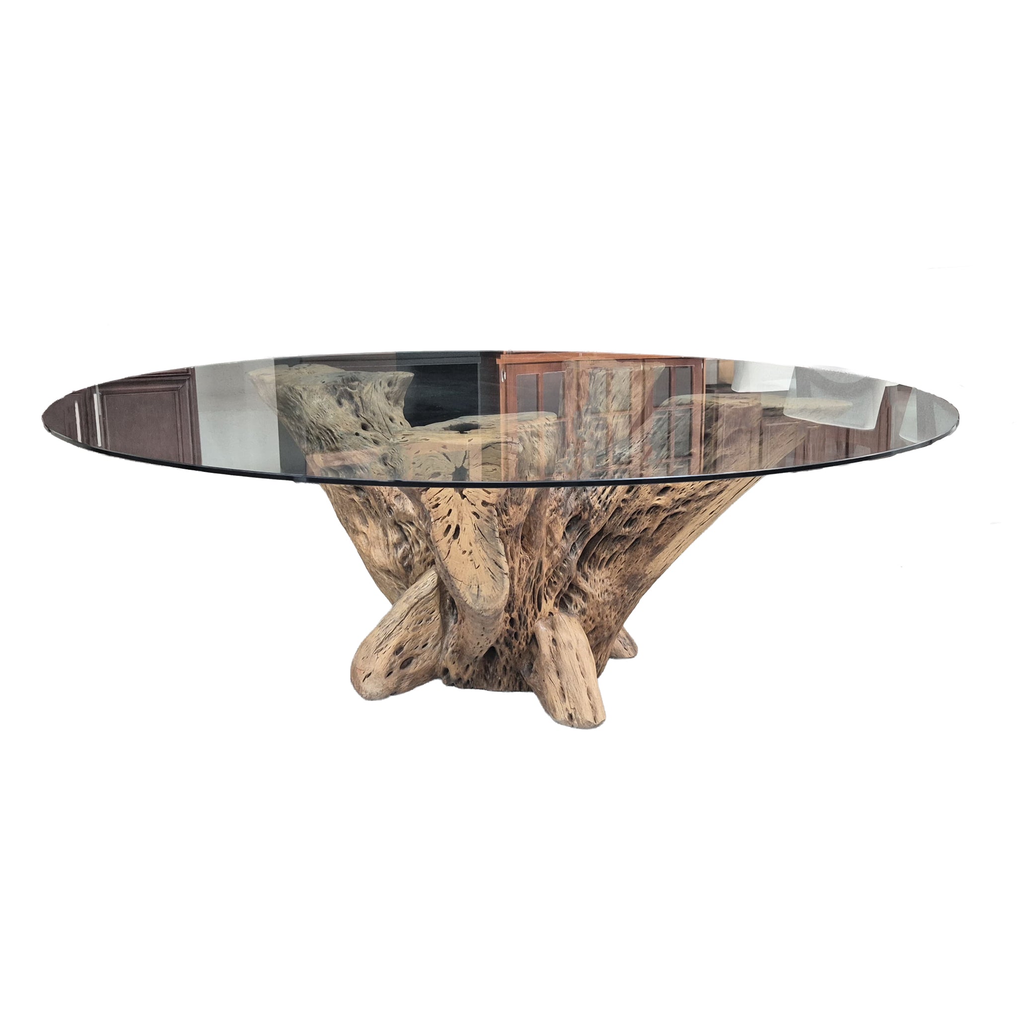 El Comedor Cactus destaca por su originalidad y carácter artesanal. Su mesa redonda con cubierta de cristal templado descansa sobre una base elaborada en raíz de cactus deshidratado en tono natural, lo que convierte a cada pieza en una obra exclusiva e inigualable. Acompañado de sillas (modelo variable), este comedor se convierte en el centro de atención de cualquier espacio.