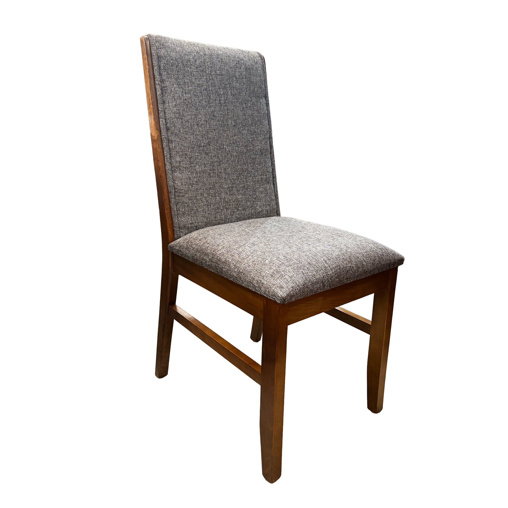 Lo acompañan 8 sillas modelo Egipto, elaboradas en estructura de madera de alta calidad y tapizadas en tela color Smook, que añaden un toque de calidez, suavidad y comodidad al conjunto.