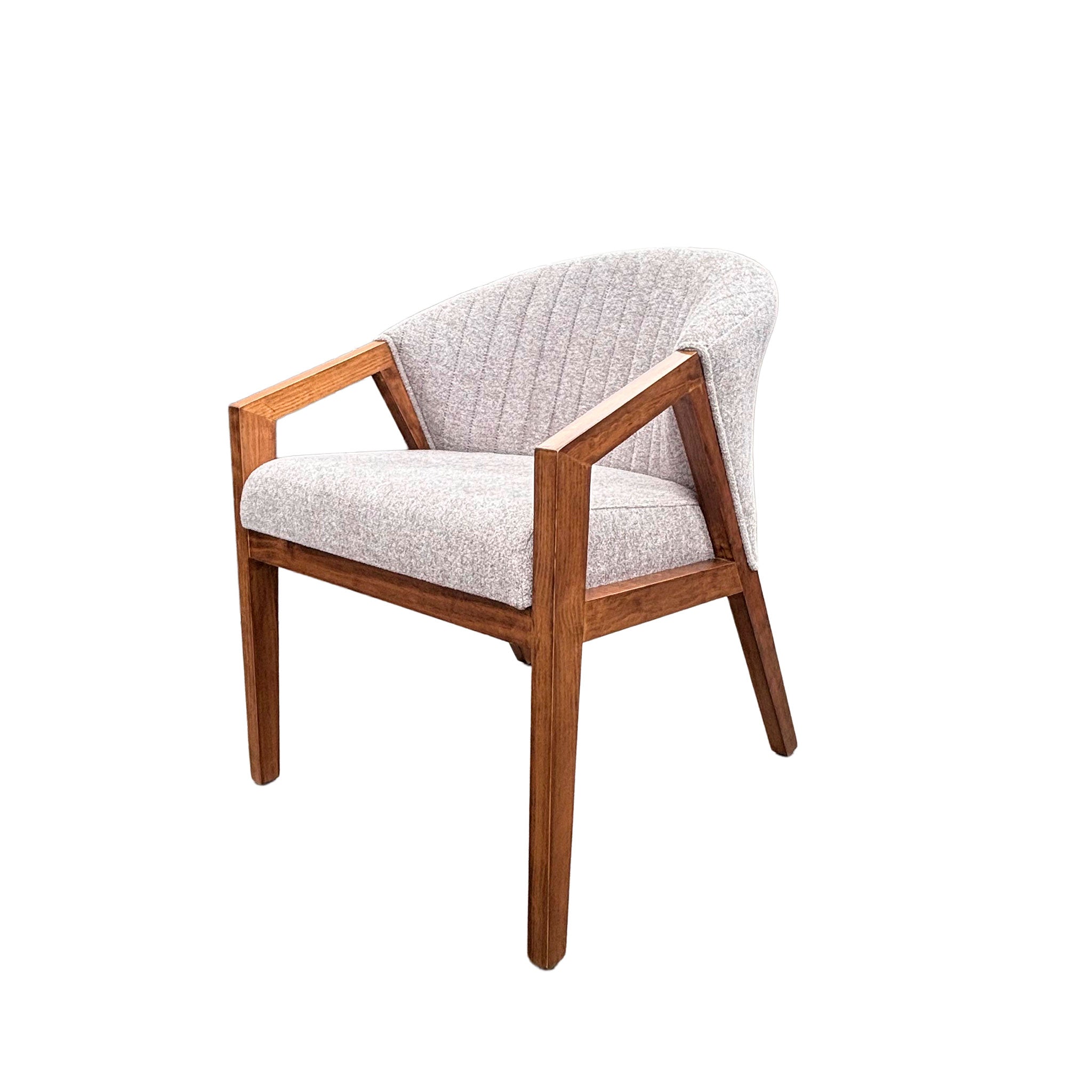 El Sillón Kenia está diseñado para brindar confort y estilo en cada detalle. Su estructura de madera resistente en tono Vintage Avejentado asegura durabilidad, mientras que los descansabrazos ofrecen el confort adicional de un sillón. El asiento y respaldo tapizados en tela Phoenix Gun Smoke, con costuras en color Vintage Avejentado, crean una combinación elegante y sofisticada, ideal para comedores de madera o espacios cálidos y acogedores.